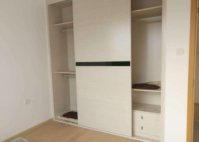 主卧室的衣柜让人很满意,看起来就像是内嵌在墙里的。主要是根据卧室的假飘窗窗台的宽度做的衣柜,所以看起来很整齐。