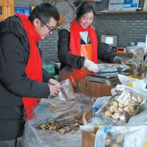 庆元县商家吸收打包香菇是什么关联年货。 童判断晓峰摄