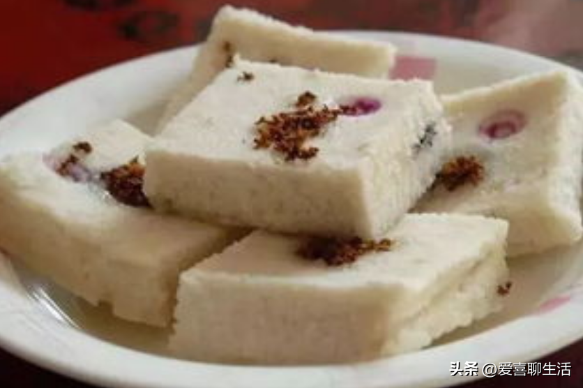 :1,玫瑰花和干桂花都用清水浸泡,糯米粉加入白糖和温水搅拌均匀,至握起来成团,轻轻一推就散开的状态。