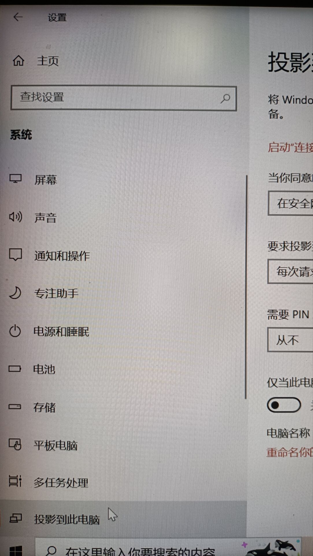 第二步,打开电脑“开始”中的“设置”,点击“系统”,找到里面的“投影到此电脑”。