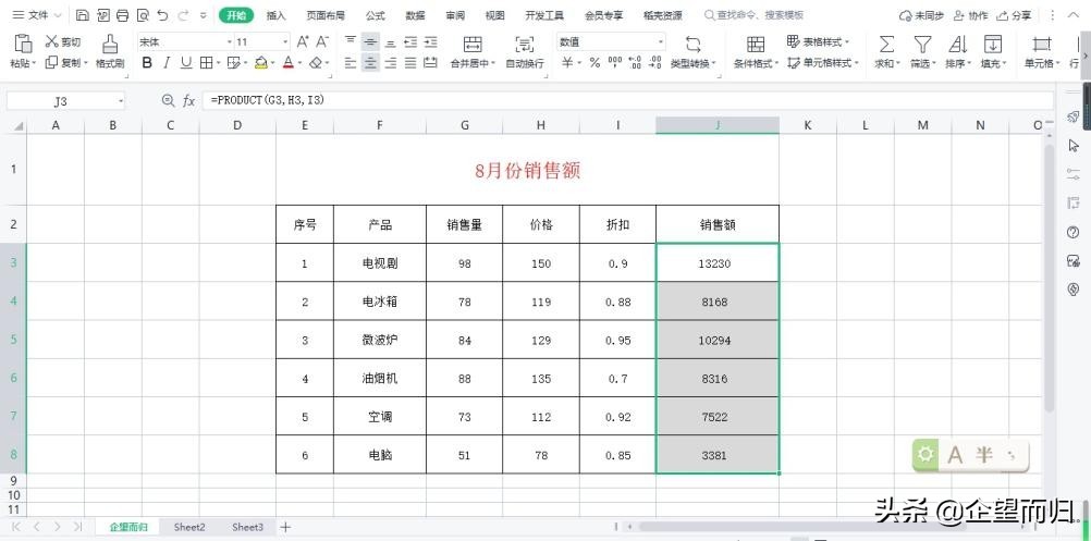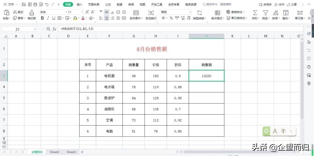 销售额的计算公式excel乘法(销售额的计算公式excel乘法函数)