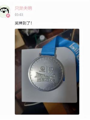 失明在动态里晒出了这次活动的按键手柄奖牌用手