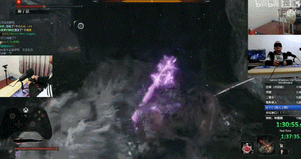但即便是在打破纪录的直播中,意外也常常发生。让观众们印象最深刻的一段是第二次破纪录直播中与精英怪罗伯特的挑战,这是《只狼》中一个特殊的角色,打败它的方法不是杀死它,而是要找到合适的角度把它从天桥上踹下去,如果没能成功,那么就得从头再来。