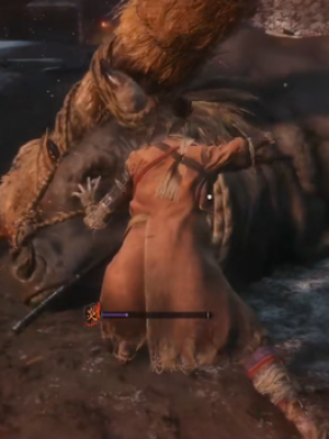 和普通的《只狼》速通不太一样,蒙眼的路线往往不会选择一些极限的跳邪道或者卡pcBoss,反而会选择更稳妥不容易出错的打法,以便自己能随时在闭眼时为角色定位,尤其是在选择Boss和精英怪的打法的时候,想要击杀它并不算困难,但更重要的是打完以后,得能精准确定自己的位置才能继续跑图。