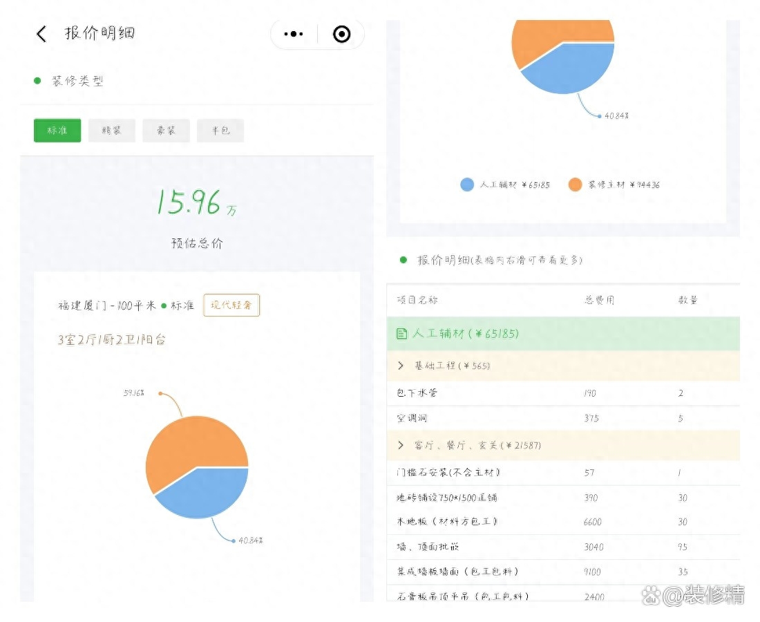 一键免费获取同城装修报价以及不同风格的报价清单明细。
