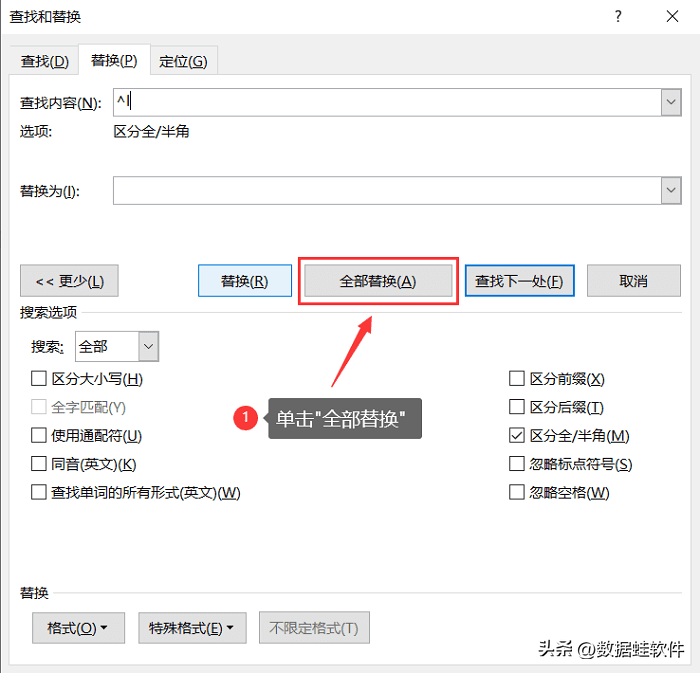 最后点击【全部替换】就可以删除全部的空白页了。