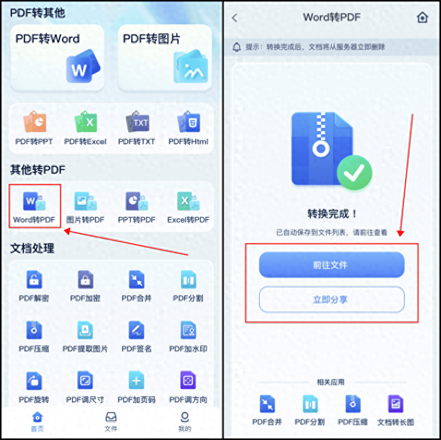 迅捷PDF转换器是一款功能强大的 PDF 编辑和管理工具,也可以用来将 Word 文档转换为 PDF。请按照以下步骤操作:首先在应用商店中下载这款APP并安装,然后打开APP并点击“转换”按钮,选择要转换的Word文档并上传。最后等待一会,就可以完成转换了。