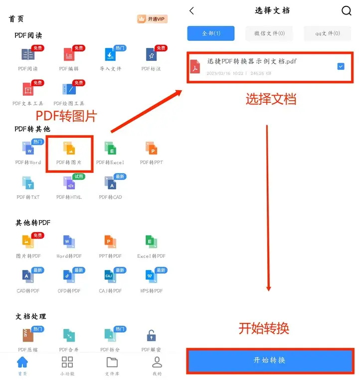 打开软件之后,选择主页面的【PDF转图片】,之后点击【选择文档】添加自己需要转换的文件,【开始转换】即可~