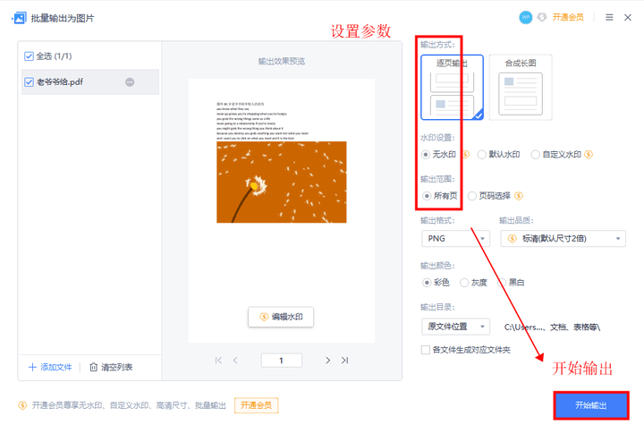 选择好【PDF转图片】之后,再右侧调整需要的参数,最后点击右下角的【开始转换】就行啦