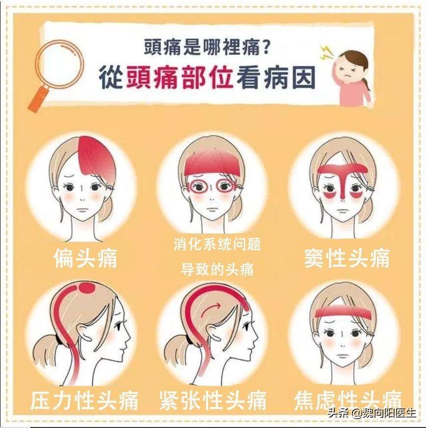 原发性头痛:通常是由影响头颈部痛觉结构的脑膜、血管、肌肉、骨膜等病变导致,例如紧张性头痛、偏头痛和颈源性头痛。