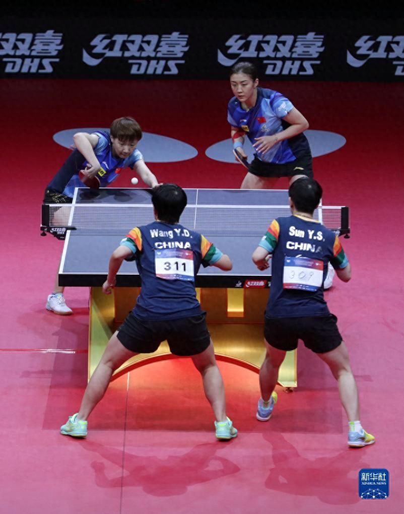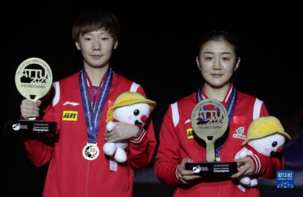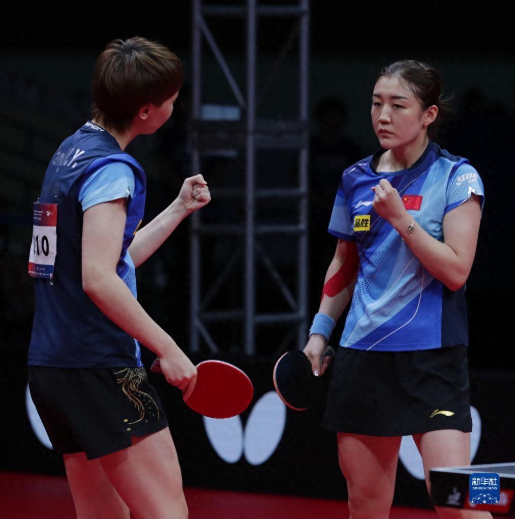 当日,2023年乒乓球亚锦赛女双决赛在韩国平昌举行。中国组合王曼昱/陈梦以3比0战胜队友孙颖莎/王艺迪,夺得冠军。