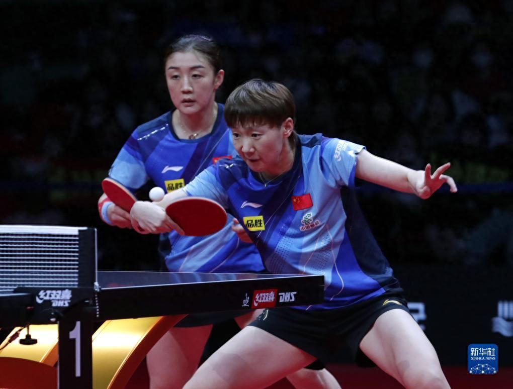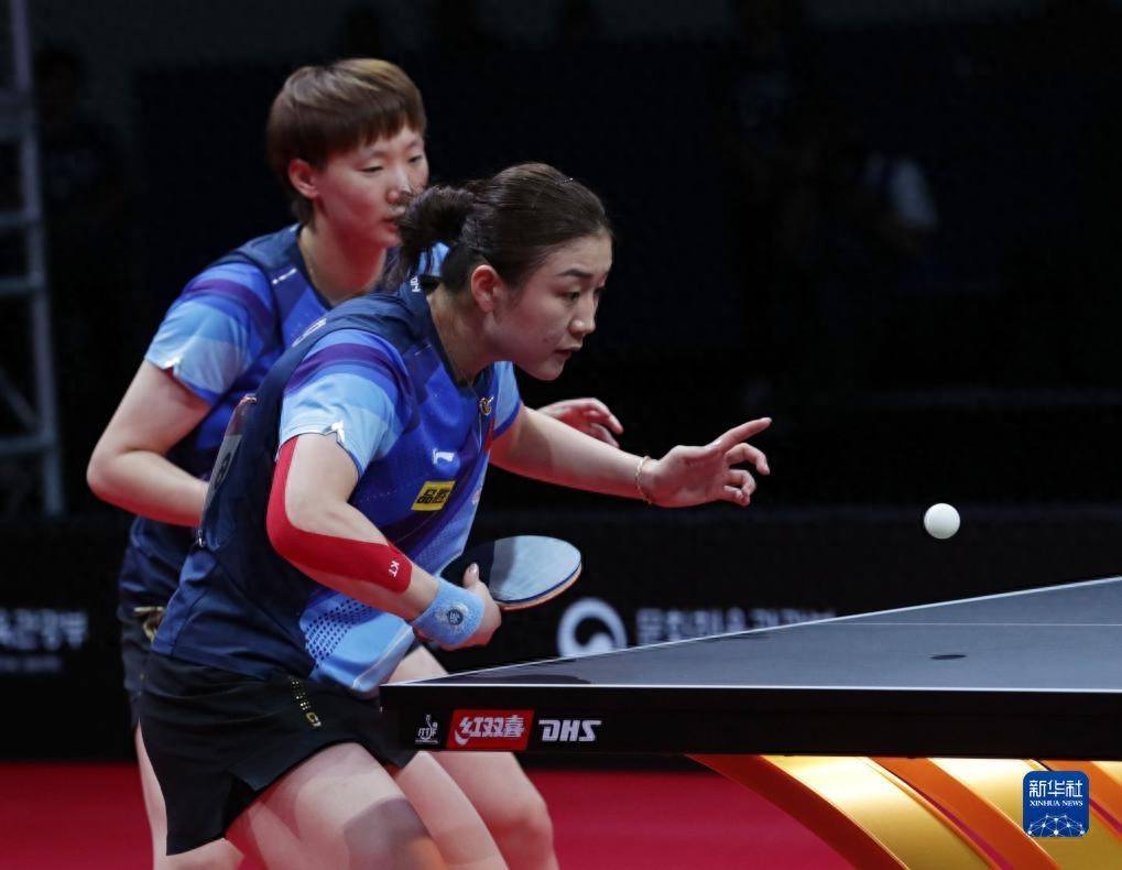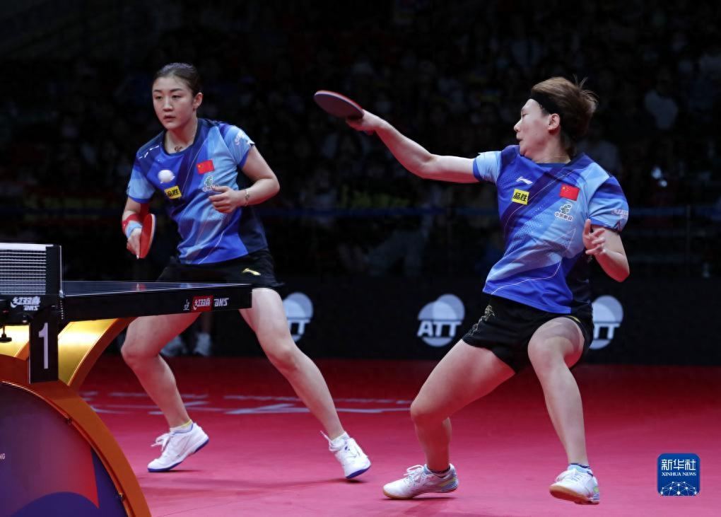 9月10日,王曼昱/陈梦(左)在比赛中。新华社发(李相浩摄)