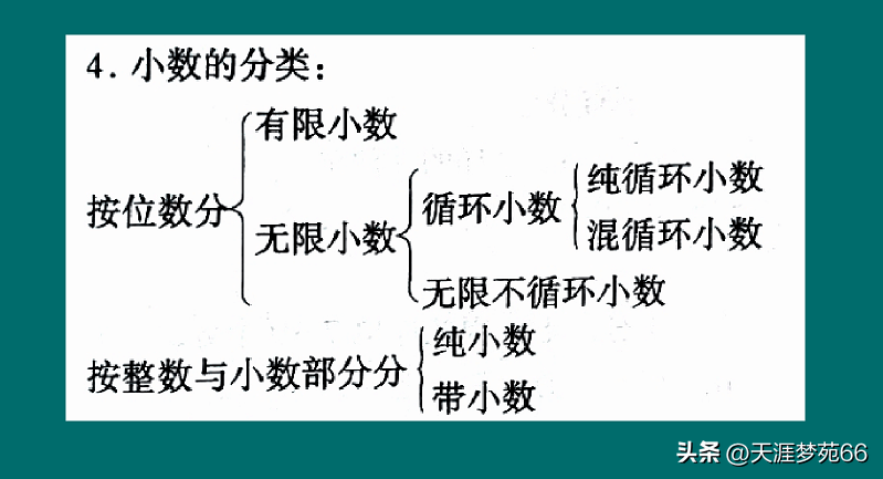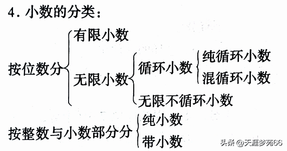 ①按位数分:有限小数+无限小数【循环小数(纯循环小数、混循环小数)+无限不循环小数】