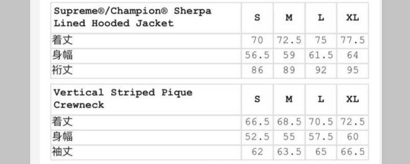 supreme的官方尺码表