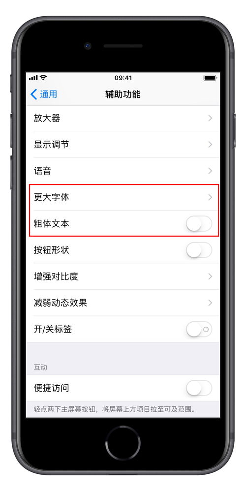 3. 设定字体:转到 iPhone 的设置应用程序,并选择 "显示与亮度" 选项。在这里,您将看到 "文本大小" 和 "粗体文本" 等选项。选择 "加粗文本" 将让字体看起来更加粗体,而选择 "粗体文本"以外的选项,您可以通过滑动条选择更适合自己的文本大小。