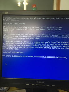 当计算机遇到0x000000ED错误时,用户会看到一条错误消息,其中包含"UNMOUNTABLE_BOOT_VOLUME"字样。这个错误表示计算机无法加载系统的启动卷,导致无法进入安全模式或正常启动。