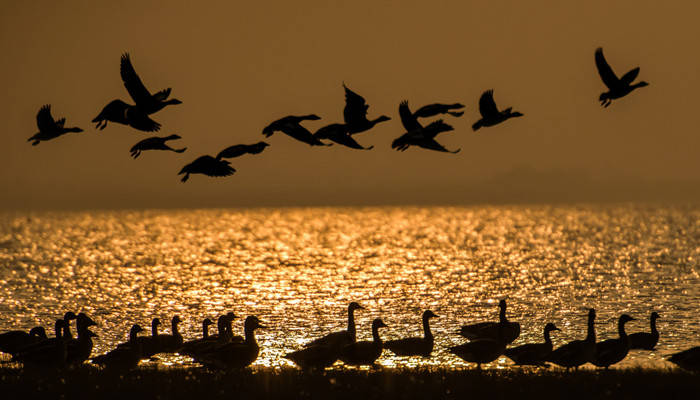 北归的大雁是春季。大雁又称野鹅,天鹅类,大型候鸟,属国家二级保护动物。大雁热情十足,能给同伴鼓舞,用叫声鼓励飞行的同伴。大雁属鸟纲,鸭科,是雁亚科各种类的通称。中国常见的有鸿雁、灰雁、豆雁、白额雁等。雁队成6只,或以6只的倍数组成,雁群是一些家庭,或者说是一些群的聚合体。