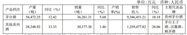 就产销量情况来看,去年,贵州茅台销售量同比增加3.72%至66438.69吨,生产量则同比增长12.72%至84721.17吨,库存量同比增长4.62%至260,746.17吨,包含成品酒库存量10282.35吨、半成品酒(含基础酒)250,463.82吨。