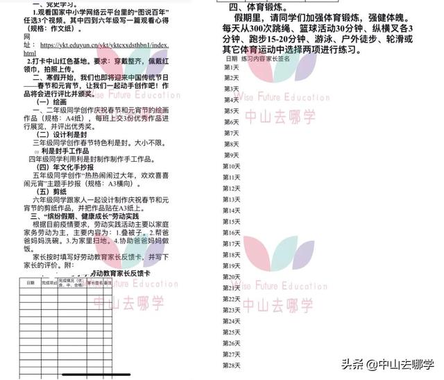 中山各小学的寒假作业~