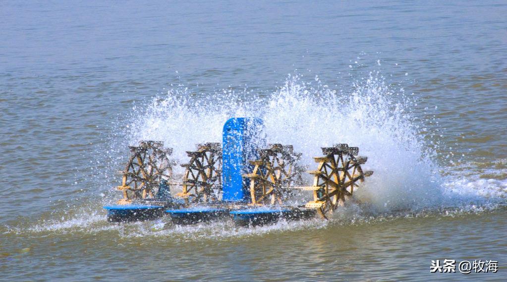 在水产养殖中的 paddlewheeler 增氧机