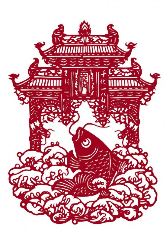 俗传鲤鱼跃龙门,跳过去则化为龙,跳不过去仍为鱼,而能跳过龙门的只有鲤鱼。“鲤鱼跳龙门”常用来比喻经过奋斗而改变地位,也指寒窗苦读有成或官场得意。