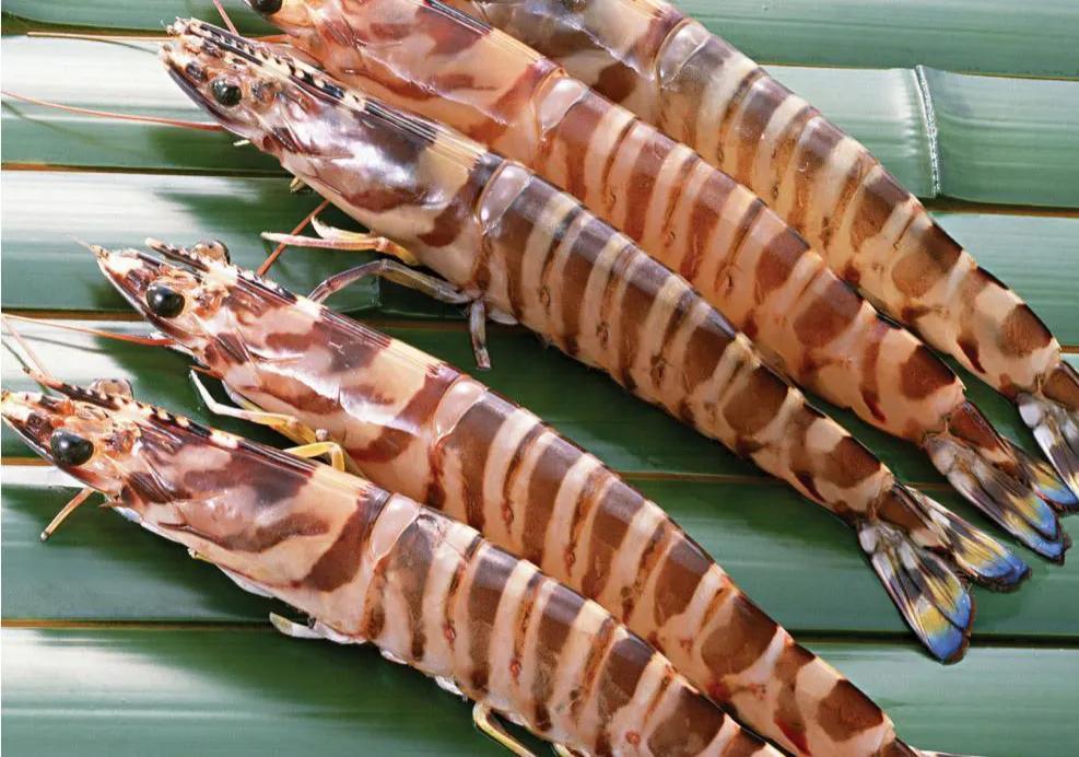 黑虎虾体型巨大,以个头大为美、为贵。肉质厚实有弹性,味道极其鲜美。因为个头大、卖相好,也是各大海鲜酒店喜欢用的虾之一。