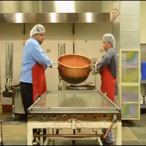 但如果选择走跳跳糖这一条路,这些热糖浆就会被送到充满二氧化碳的高压室(600psi)里进行搅拌“充气”,里面的压力大约是普通大气压的40倍。