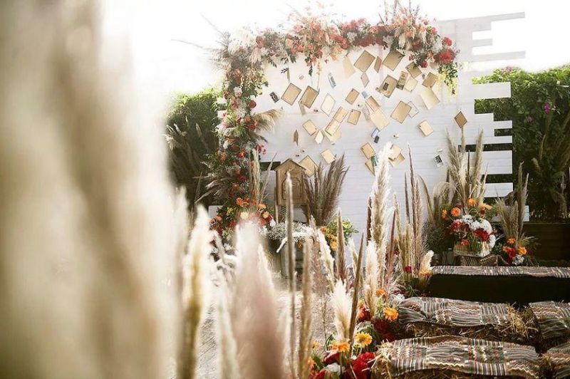 16,不用鲜花,尝试用蒲苇,绿叶,树枝,气球,水果等来装饰你的婚礼现场