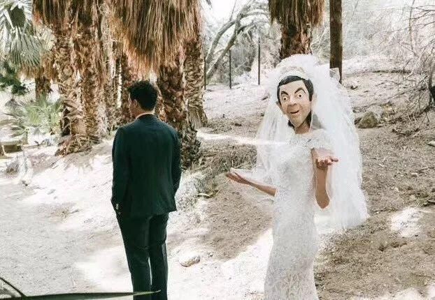 30,在第一次看前,先把新郎的眼睛遮住,然后来一次亲密接触