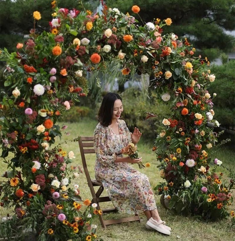 56,制造一个独特的拱门:在宾客入场时候发给每位来宾一朵鲜花,然后让客人把们插在一个拱形装饰上,在仪式中新人这拱门下通过。
