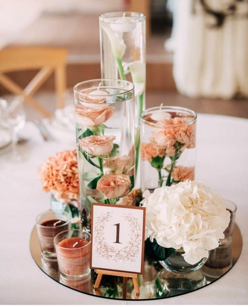 20,桌花设计可以试试将花朵放在带水的透明玻璃瓶里