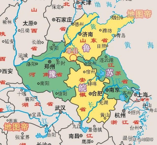 “鸡鸣三省”这个词大家都不陌生,顾名思义,雄鸡啼晓,三省都可听闻,用来形容三省交界边区的毗邻性行政地理现象。三省交界之地有不少,如贵州省毕节市还有个鸡鸣三省村等等。我们今天讲讲四省交界处的山东单县。