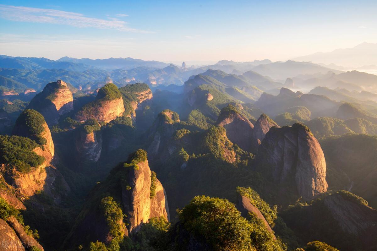 崀山的丹霞地貌面积广大,达108平方千米,共300多座石峰和石寨。