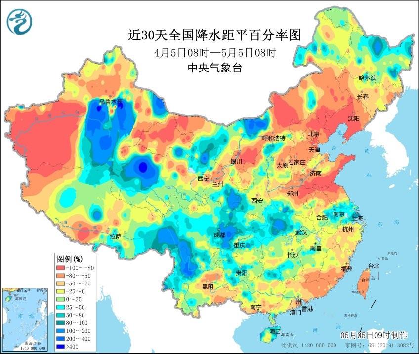 过去1个月时间里,全国雨水分布不均,南方雨水频频,除去云南外,几乎整个南方过去30天里累积雨量都在100毫米以上,