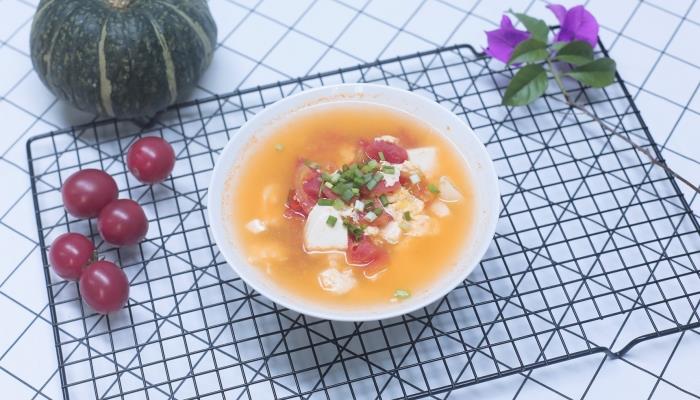 食材:番茄2个、鸡精少许、糖少许、生抽一勺、蚝油半勺、蒜2瓣、芹菜少许、食用油、豆腐、盐适量