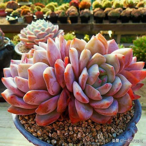 今天给大家分享的就是其中的粉色系多肉,粉色的多肉看上去粉粉嫩嫩的,仙气十足,给人一种很治愈的感觉,比如这几种,养护简单。