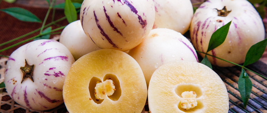 人参果原名为香瓜茄,是一种高营养水果,果肉清香多汁,腹内无核,风味独特,具有高蛋白、低脂肪、低糖等特点。