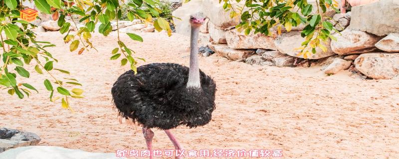 鸵鸟生长快,繁殖能力强,适应性强,且非洲鸵鸟的羽毛可以用于制作服饰,皮可以作为优质皮革的材料,鸵鸟肉也可以食用,经济价值较高,在很多国家已被人工饲养。