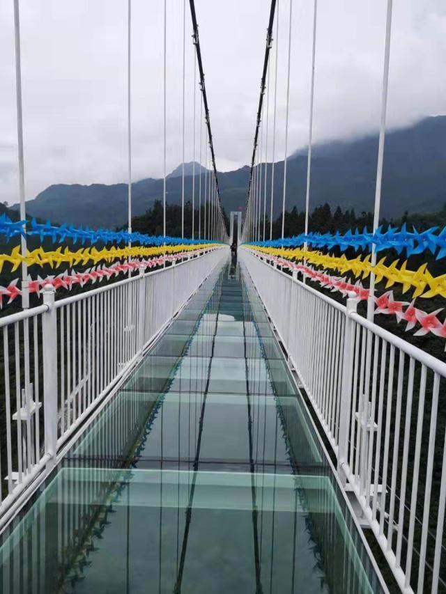 也不知道从什么时候开始,各大景区都流行修建悬空玻璃桥,这南宝山也不例外,一座白色的玻璃墙横跨在峡谷之上,桥两侧则装着安全网,一股瀑布在峡谷另一侧的崖壁上飞流而下,给整个玻璃桥增添了异样的风光,桥下树木茂密,郁郁葱葱,好似原始森林一般的神秘。