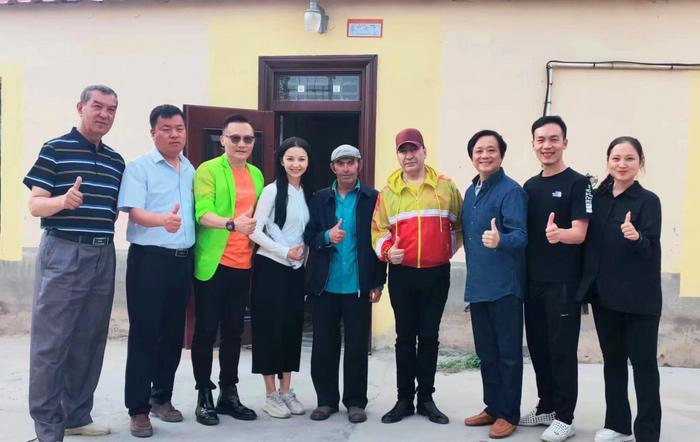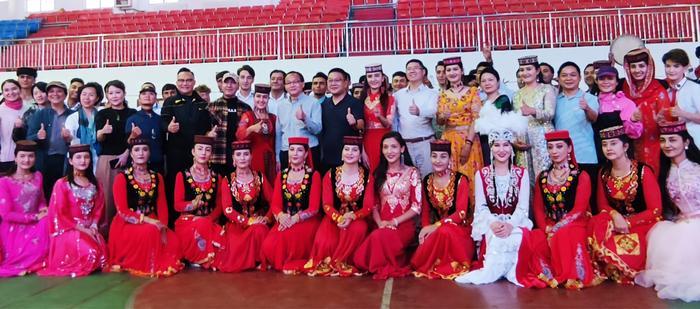 图:詹晓南与参加彩排的塔县文工团青年艺术骨干合影