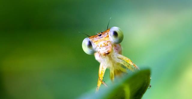 第一点:眼睛的距离。豆娘两眼之间的距离相对比较大,又因为两个眼睛比较大,看起来就像两个哑铃一样,而蜻蜓就不一样,两眼之间距离很小,有的甚至是彼此相连的。