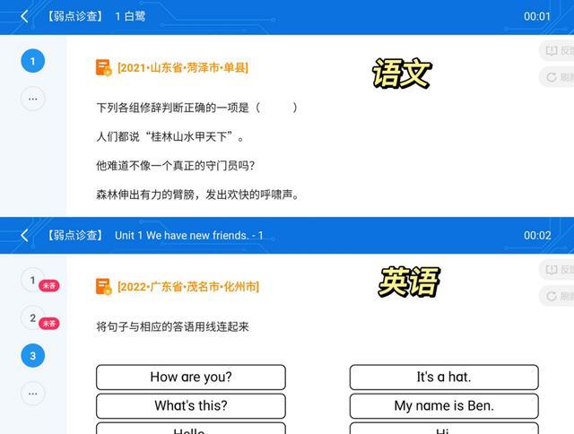 读书郎AI精准学可以根据AI诊察的测评结果能为孩子提供个性化的学习路径,更有知识点专项测评实时分析学生知识点的掌握情况,精准定位知识薄弱点,不论是练习题还是诊断测验题都来自于名校和历年考试真题,只做不会的题,只做精华题,减少无效学习。