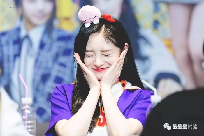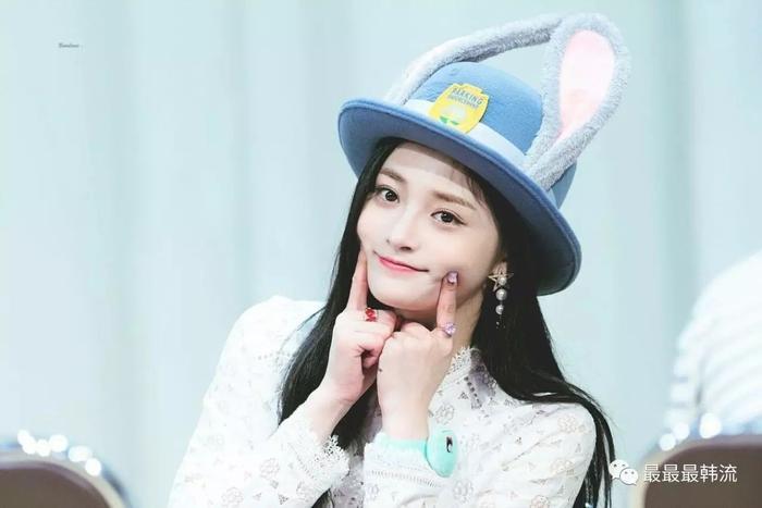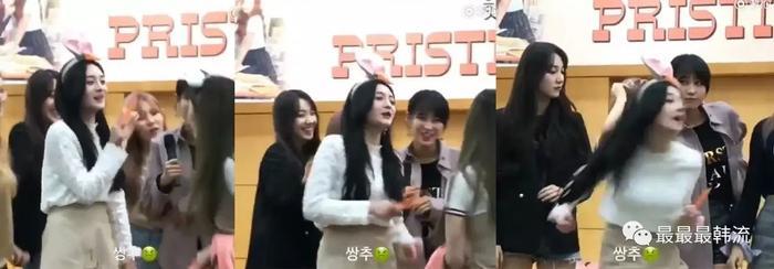 前段时间PRISTIN在首尔举办了签名会,喜欢周洁琼的粉丝送了她一个兔耳朵帽子,这姑娘收到礼物后特别开心,一直戴在头上。