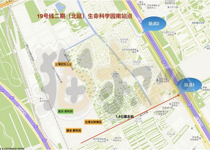 北延工程南起牡丹园站(不含),北至市郊铁路东北环线生命谷站(不含),线路全长约17.6公里,设站6座(北沙滩-上清桥南-上清桥-西三旗-新龙泽-生命科学园南)。