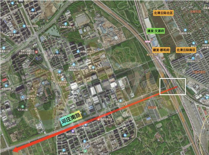 邓庄南路往北是邓庄北路,航智路在邓庄北路东侧一段。