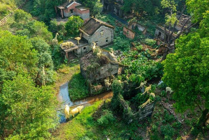 田间的榕树上“长”出了银光闪闪的大鱼,老宅的屋顶上冒出巨型绿芽,野草丛生的村落遗迹上有豹猫和麋鹿出没,百年老街市换上了耀眼的霓虹灯新招牌……