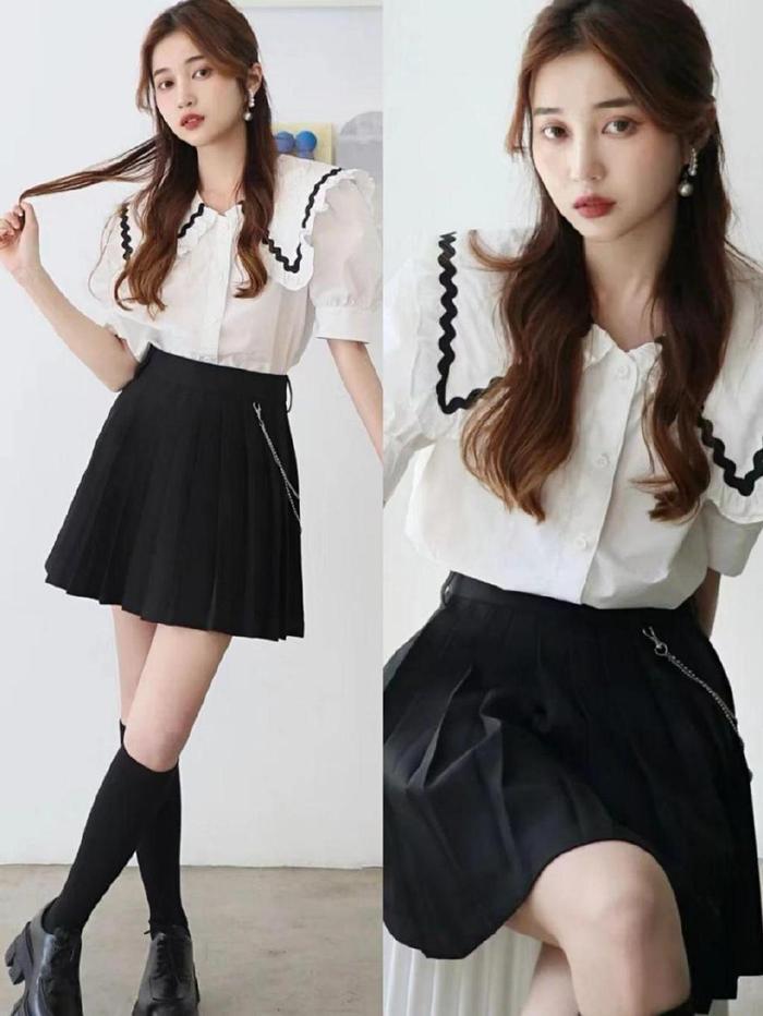 黑白配色就是最经典大气的,与“甜”味穿搭组合在一起也是甜得恰到好处。穿一件娃娃领、泡泡袖设计的白衬衫,妥妥的就是元气可爱的甜系萌妹。