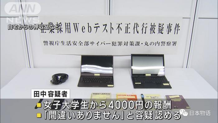 据《产经新闻》报导,东京都警视厅网络犯罪对策课表示,田中信人从今年1月至7月在推特上向求职中的大学生推销,透露自己能够帮对方参加企业的网络招聘考试,并自称完成4000件以上委托,通过率95%。
