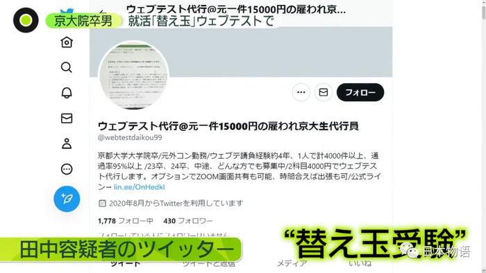 田中信人毕业于日本名校京都大学(日本排名第二),还修完了京大研究生院课,可以说妥妥的一名学霸了。他供称自己最初只是想赚点零花钱而已,后来得到求职大学生的感谢,因此觉得这样做很有意义,目前对罪行供认不讳并表示深刻反省。