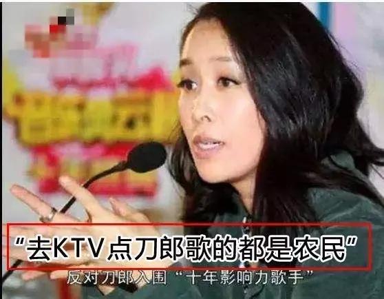 早前在刀郎《2002年第一场雪》红遍大江南北,入选十年影响力歌手时,就被她极力反对。甚至直言:“在KTV点刀郎歌的人都是农民。”